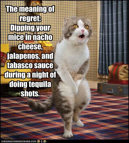 The Meaning Of Regret Dipping Your Mice In Nacho Cheese Jalapenos And Tabasco Sauce During A Night Of Doing Tequila Shots Lolcats Lol Cat Memes Funny Cats This link is to an external site that may or may not meet accessibility guidelines.